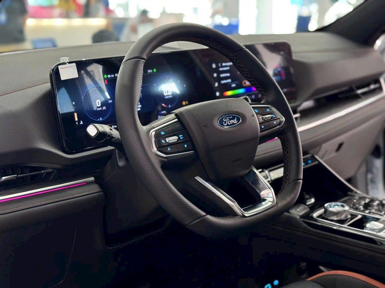 Hệ thống đèn trang trí nội thất đa sắc màu tạo nên bầu không khí ấm áp và tinh tế, trong khi cửa sổ trời toàn cảnh panorama mở ra không gian thoáng đãng, mang ánh sáng tự nhiên vào bên trong xe. Các tiện nghi thông minh như màn hình giải trí trung tâm, kết nối điện thoại, điều hòa tự động và nhiều tính năng hỗ trợ khác, giúp Territory trở thành lựa chọn hoàn hảo cho những ai tìm kiếm một chiếc SUV vừa tiện nghi, vừa đẳng cấp.